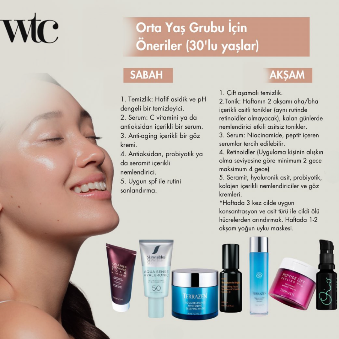 30'lu yaşlar, ciltte yaşlanma belirtilerinin ortaya çıkmaya başladığı bir dönemdir. Bu nedenle rutinlerde anti-aging içeriklere yer verilmelidir.