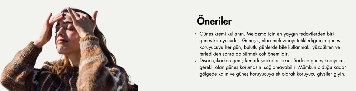 : Deriyi tahriş eden agresif ürünler ve güneş ışığına karşı hassasiyeti arttıran cilt bakım ürünleri, melazmayı kötüleştirebilir.